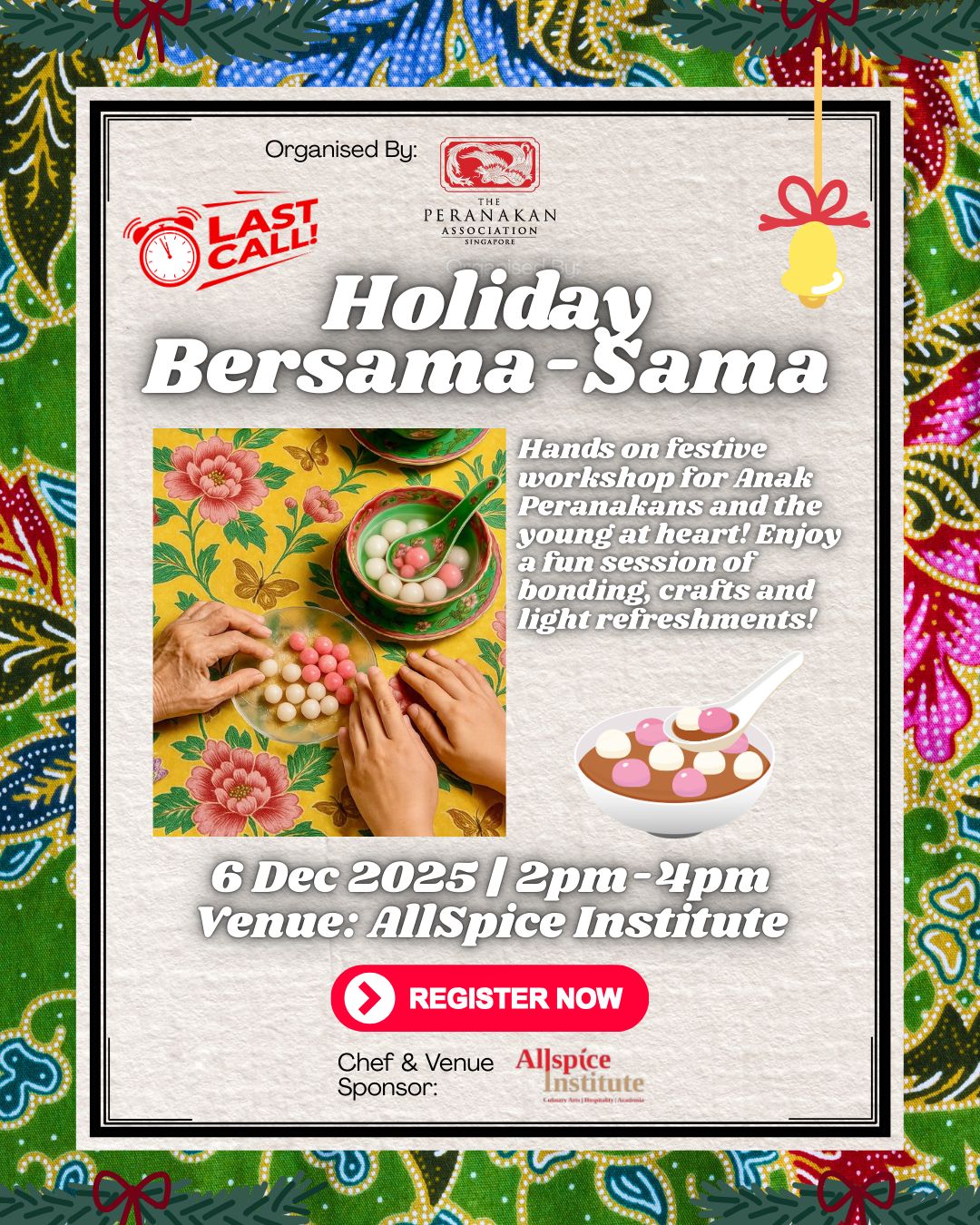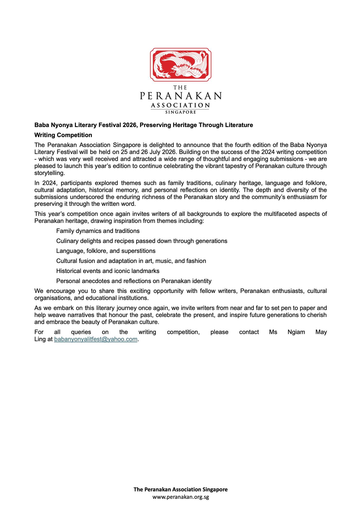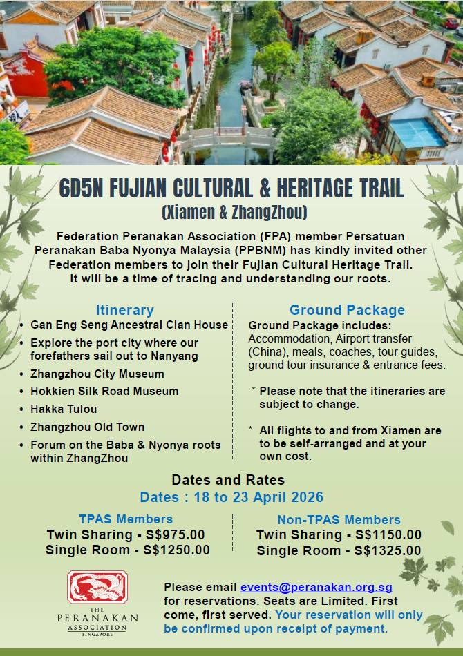 Are you organising an upcoming Peranakan-related event in Singapore or elsewhere in Southeast Asia? We invite you to share your event with the community by submitting the details to our Community Events page.