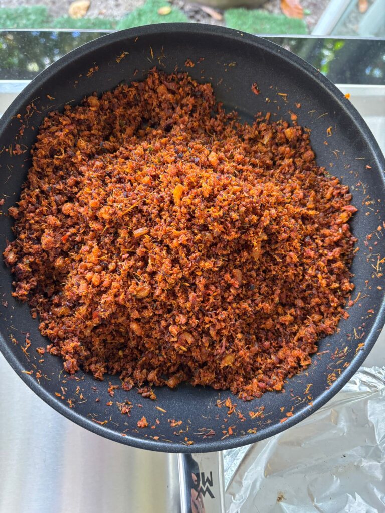Dried prawns (hae-bee) are a crucial and versatile ingredient in many dishes across Asia. Hae-bee imparts a unique umami taste.ย Growing up in a peranakan household where my mum cooked five meals a day, hae-bee was used in so many of my familyโs dishes that cooking it instantly evokes wonderful memories of my mum in her kitchen, thanks to its fragrance. Indeed, Iโd say that every family has their own version of sambal hae-bee. Being a new member of The Peranakan Association Singapore (TPAS), I thought I should share my recipe. Sambal hae-bee can be used as a filling for sandwiches or a side dish.