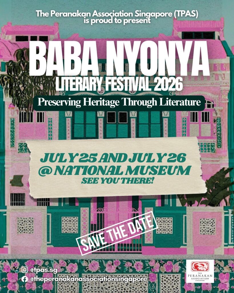 The Peranakan Association Singapore (TPAS) has been organising the biennial Baba Nyonya Literary Festival since 2019. Born from a desire to preserve Peranakan heritage through the written word, the Festival has grown steadily. Its primary aim is to propagate Peranakan culture via literature, showcasing Peranakan-themed works by both Peranakans and non-Peranakans. Central themes across all editions have been cultural identity and what defines the Peranakan voice.