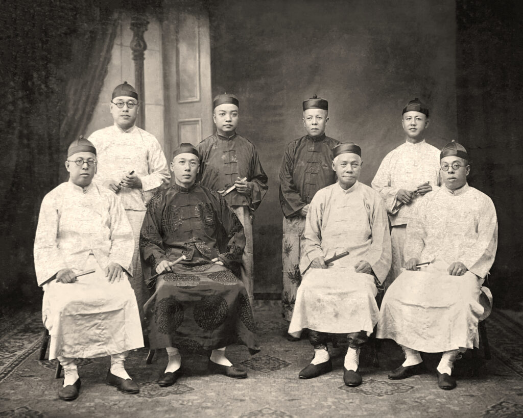 Baba Benedict Khoo’s paternal great-grandfather Guan Chiang, standing at left, was the youngest of the eight children of Khoo Swee Yeow and Tan Geok Lin in Singapore. Guan Chiang’s third brother on right was Thiam Swee.