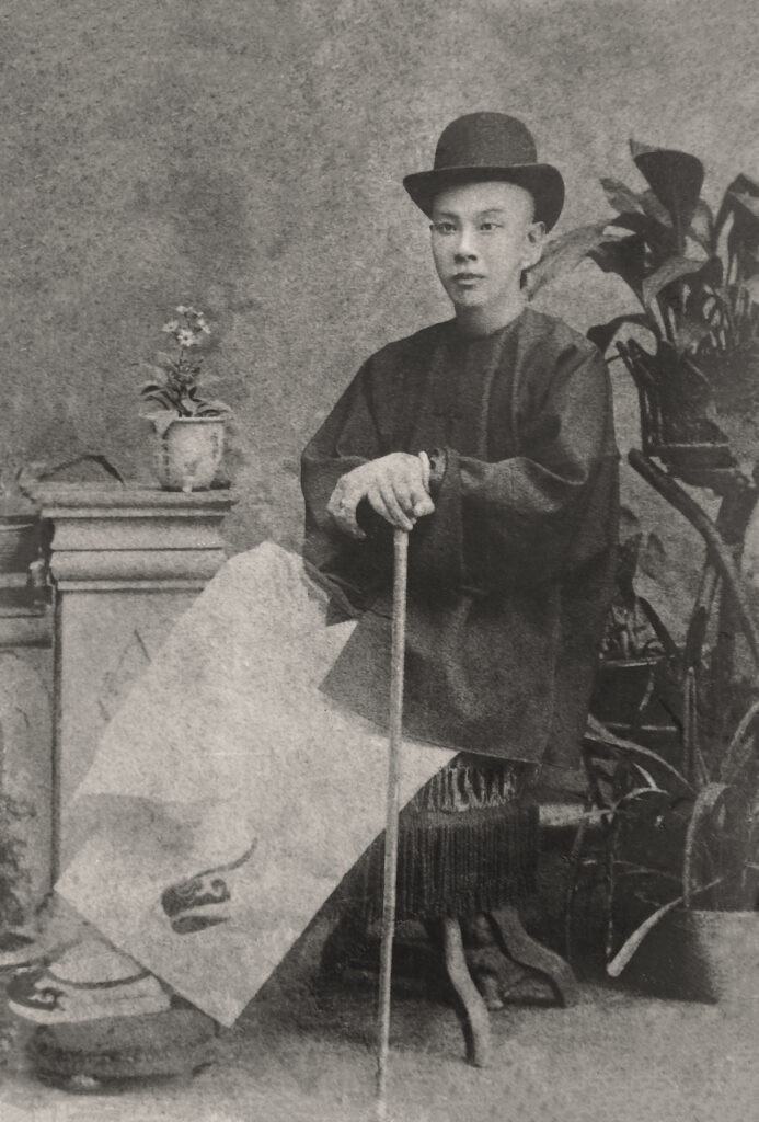 It was the period when many babas started to attend English-language schools like Raffles Institution, St Joseph’s Institution or Anglo-Chinese School. At that time, they were trying to copy the clothes and manners of their English colonial masters. The cane and hat are just two examples of cultural appropriation even if he was still dressed in the Chinese baju lokchuan. Circa 1895.