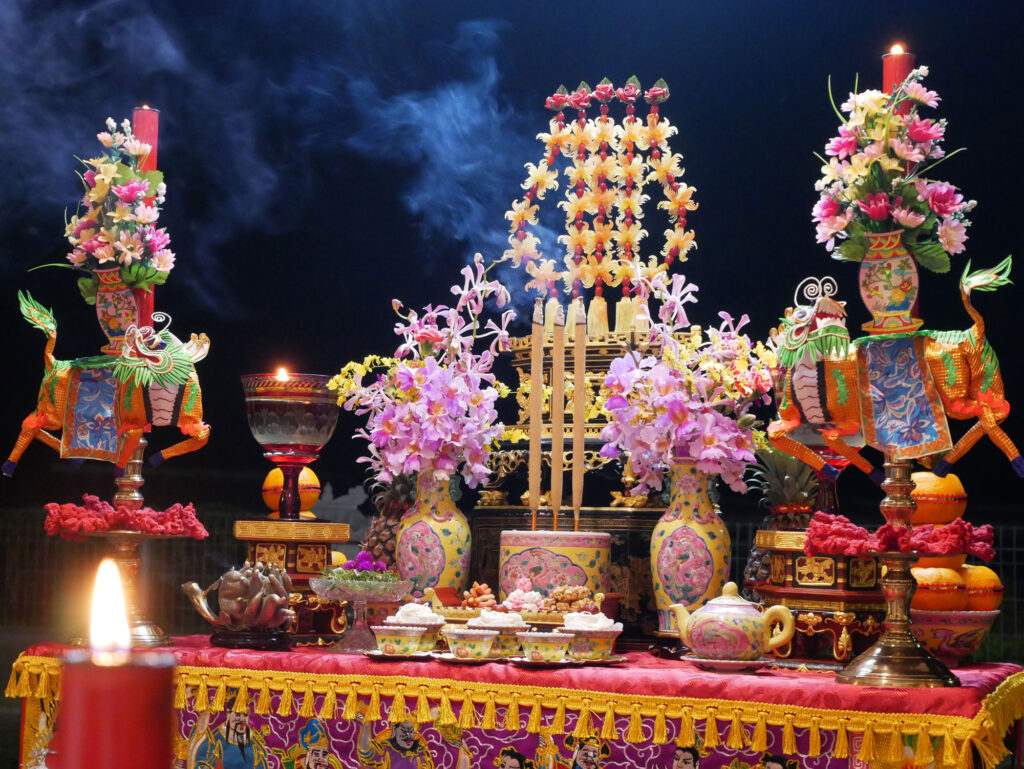 The prayers usually last till the early hours of the morning when strings of gold paper โingotsโ are set on fire to convey them to the celestial world. After this, all the offerings are removed from the altar. It is important that the offerings be distributed to everyone in the family to be consumed as the belief is that they will be receiving the blessings of Tikong.