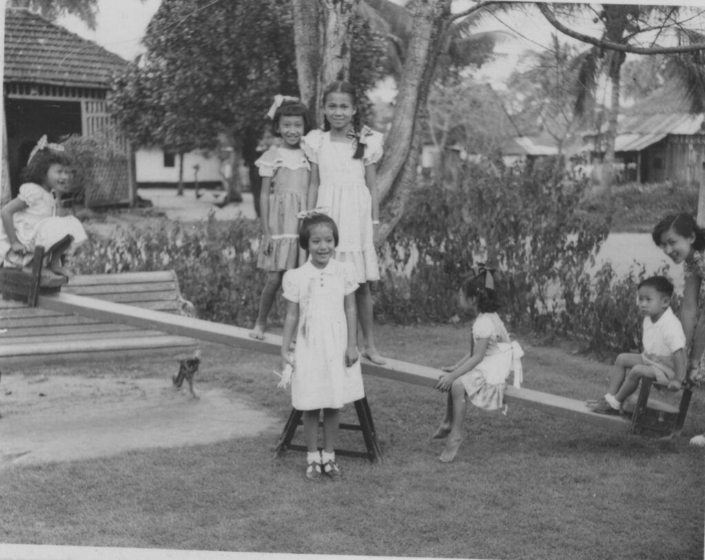 Young children then wore clothes mostly sewn by their mothers. Many played barefooted on the dirt tracks before asphalt roads were built. Maureen says, “There was plenty of space to run around. If anyone found a trail of red ants or semot api or kerengga, old newspapers were twisted into scrolls and set alight to burn the ants right up to their nests!” In large families, when one child was caned or kena rotan, the rest would be punished equally. “It was a strange kind of justice.”